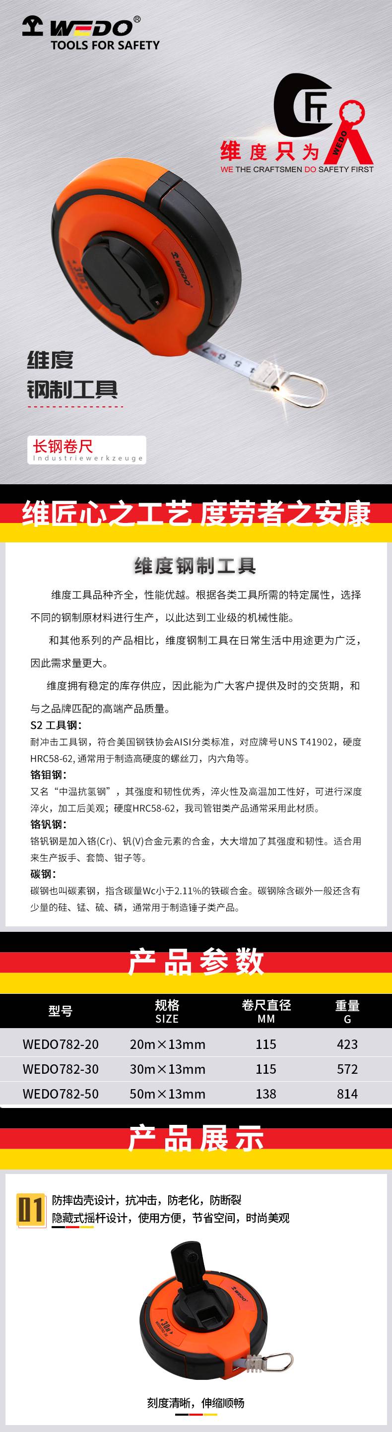 WEDO维度 长钢卷尺 高精度尺子 WEDO782 20M*13MM